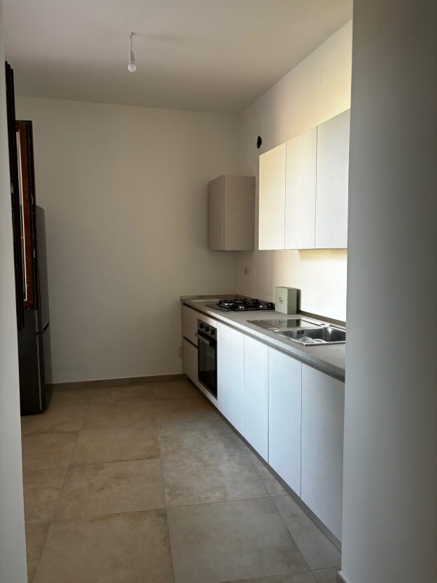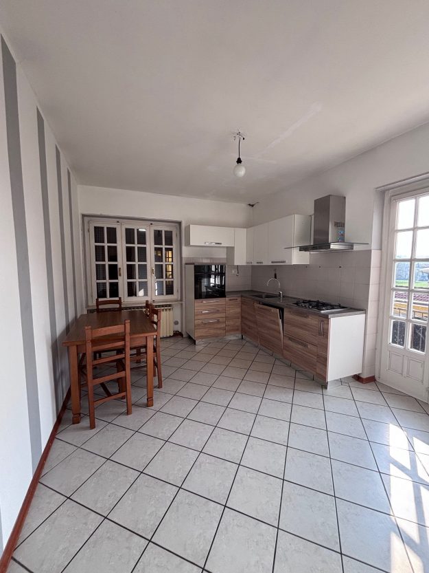 Appartamento (arredato di sola cucina e armadio), disposto su tre piani. Piano terra: ingresso in soggiorno e cucina. Primo piano: cabina armadio e bagno. Secondo piano: camera matrimoniale mansardata e terrazzo. Riscaldamento autonomo, giardino privato. € 600.00 A carico dell’inquilino: bolletta luce interna, bolletta gas per cottura e riscaldamento, bolletta acqua. Disponibile da Dicembre